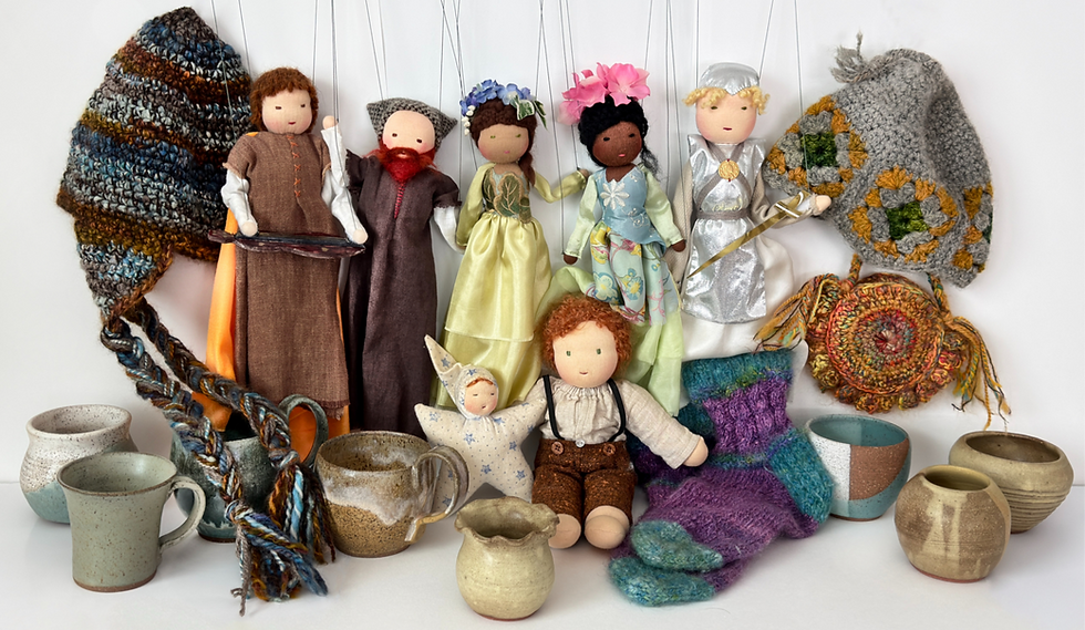Mugs, ha, you'll find occasional mugs here! And uncategorizable vessels, or anything else that I don't make regularly. There'll even an occasional handwork/textile arts treasure ~ a hat, bag, marionette, or Waldorf doll for sale from my fiber studio. Enjoy!